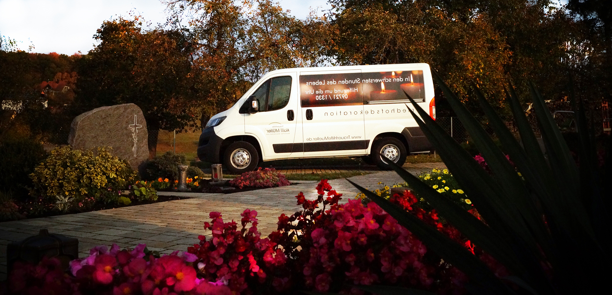 Mit unserem modernen Fuhrpark - bestehend aus einer Mercedes V-Klasse und einem VW T5 - überführen wir zuverlässig und zum gewünschten Zeitpunkt in Schweinfurt und Umgebung. Des Weiteren verfügen wir noch über einen speziellen Transporter für Friedhofsdekoration, um auch außerhalb von Schweinfurt die erforderliche Dekoration für Beerdigungen und Trauerfeiern flexibel anbieten und anliefern zu können.