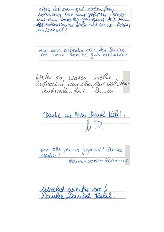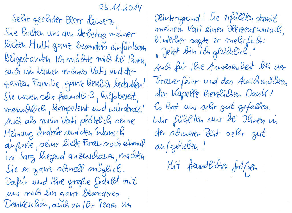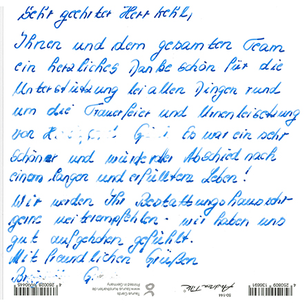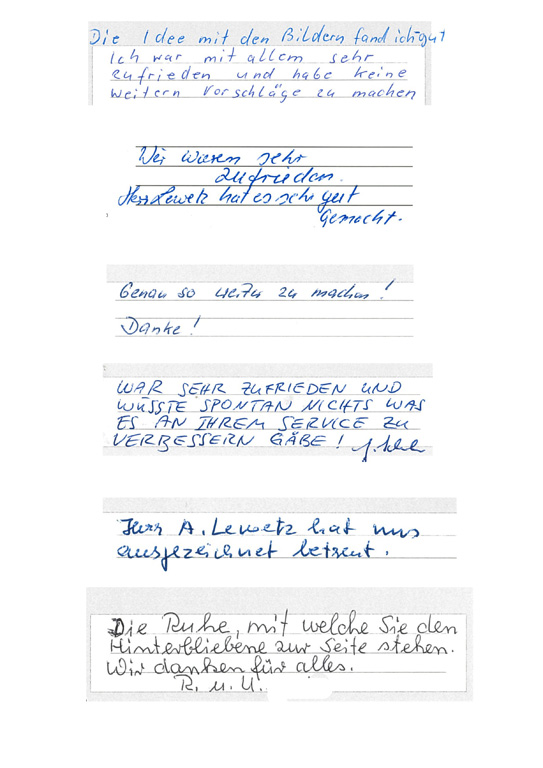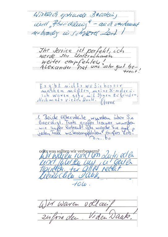 Seit über 70 Jahren begleiten wir, als qualifizierter und ausgebildeter Bestatter, Menschen in dieser schweren Zeit der Trauer und sind mit all unserem Erfahrungsschatz und unserem Feingefühl für Sie da. Um Ihnen zusätzlich die Scheu vor diesem sensiblen Thema zu nehmen, möchten wir uns und unsere Arbeit hier ausführlich vorstellen. Denn das Unbekannte ist es, was uns Angst macht. Diese Angst braucht es nicht.