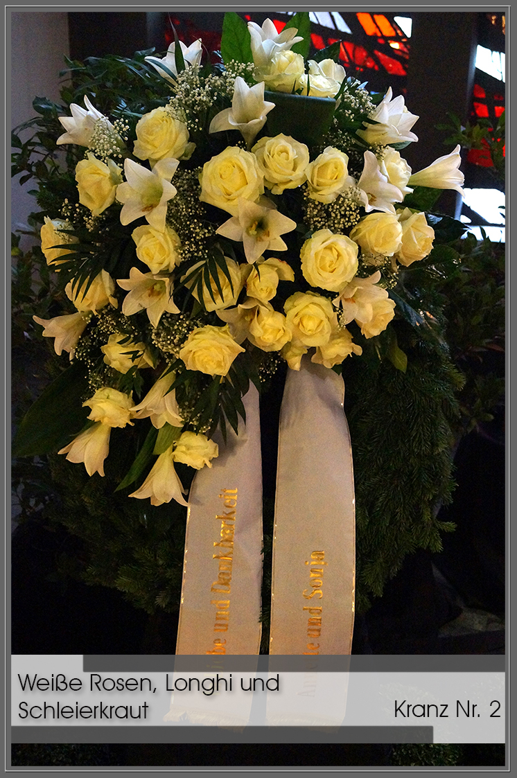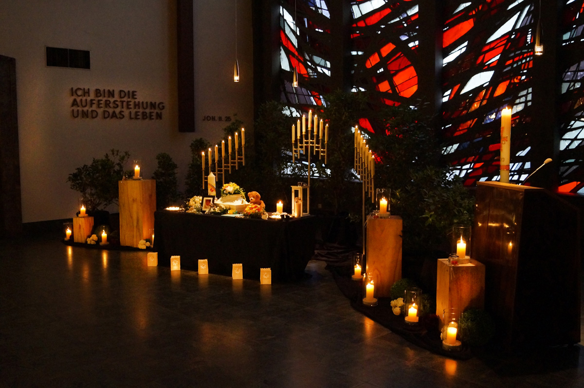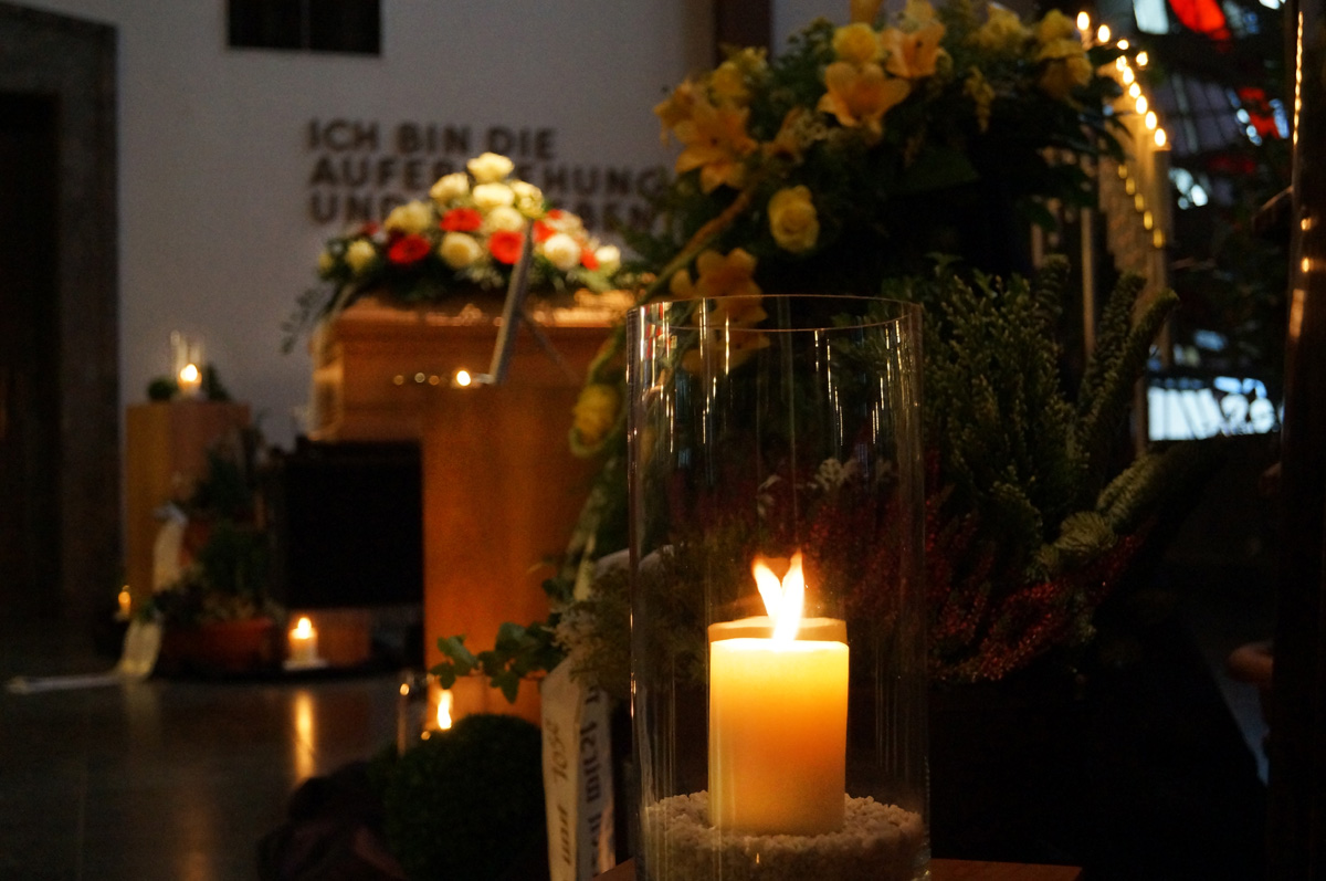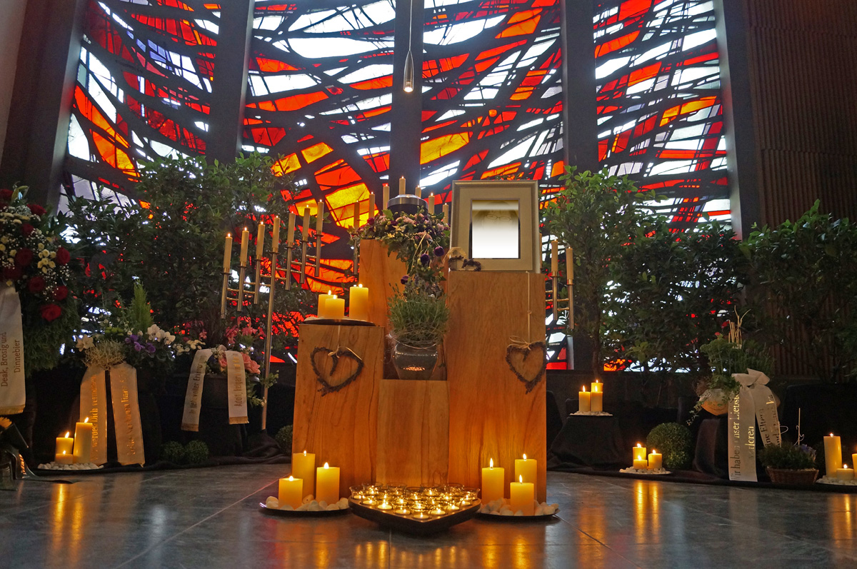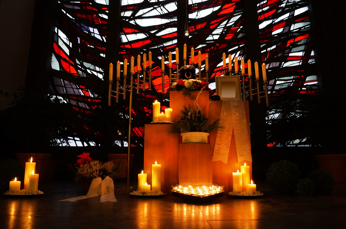 Selbstverständlich bestehen noch weitere Möglichkeiten für die Trauerfeier – ganz nach Ihren persönlichen Wünschen und Vorstellungen. Die ausgewählten Beispiele sollen Ihnen bloß einen Eindruck vermitteln. Bitte sprechen Sie uns an, damit wir Sie individuell beraten können.