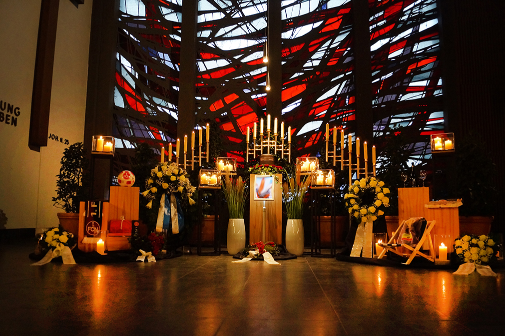 Für eine besondere Abschiedszeremonie ist es wichtig, dass sich die Trauerfeierlichkeiten auch voll und ganz in der passenden Dekoration wiederfinden. Hier sorgen wir für ein stilvolles Ambiente und setzen dabei gerne Ihre individuellen Wünsche um – bis ins kleinste Detail. Sprechen Sie mit uns über die Besonderheiten des Verstorbenen – seine Vorlieben, seine Hobbys, seine Wertvorstellungen. So können wir den persönlichen Charakter in die dekorative Gestaltung mit einfließen lassen. Ebenso können natürlich persönliche Gegenstände des Verstorbenen in die Trauerzeremonie miteinbezogen werden.